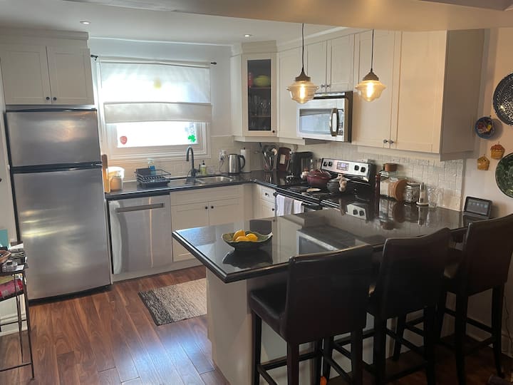 Ქალაქის ცენტრიდან რამდენიმე წუთის სავალზე, წყნარ საცხოვრებელ შესახვევში მდებარე ეს ფართო სახლი აღჭურვილია საცხოვრებელი სივრცის 4 სართულით, მყუდრო უკანა ეზოს პატიოთი ბუნებრივი აირის ბარბექიუთი (ხელმისაწვდომია მთელი წლის განმავლობაში), 3 საძინებლით, 2 1/2 სააბაზანოთი და უფასო საპარკინგე ადგილით. საცხოვრებელთან ახლოსაა ძირითადი ღირსშესანიშნაობები, რესტორნები, მაღაზიები, საზოგადოებრივი ტრანსპორტი და ველოსიპედების გაქირავების პუნქტები. ტორონტოში სტუმრობისას ბევრად უფრო კომფორტული იქნება, თუ ცალკე ბინის ან სასტუმროს ნომრის ნაცვლად მთლიან სახლს აირჩევთ.