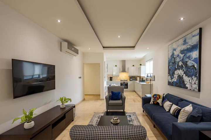 Ელეგანტური 1Br ბინა აივნით აეროპორტთან ახლოს.