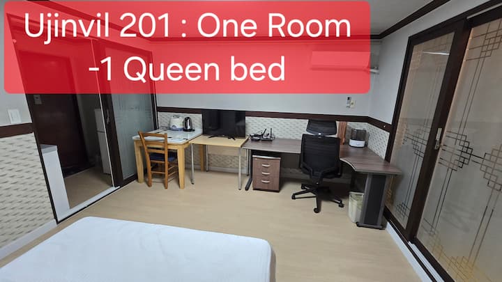 Ინგლისური სახელია ჯეიმს აჰნი. მე ვარ კორეელი. მე ვარ „Ujinvil Building“‑ის მფლობელი. 15‑დან 6 სახლი Airbnb‑ს მეშვეობით სტუმრებისთვისაა შეთავაზებული. უცხოელი სტუმრების მასპინძლობა ჩემი ჰობი და სიამოვნებაა. Მეორე ოთახი განკუთვნილია გრძელვადიანი კორეელი სტუმრებისთვის. Სახლში არ ცხოვრობს სახლის დამლაგებელი. Მეზობლად მყოფი ქალი ასუფთავებს და მართავს ჩემს Airbnb ოთახს. ახლა თავისუფალი დრო ბევრი მაქვს, ამიტომ სტუმრების ყველა მოთხოვნას ვაკმაყოფილებ. ჩემი ძირითადი შემოსავალი ექიმის ხელფასია. სკრინინგის ცენტრში მხოლოდ დილაობით ვმუშაობ