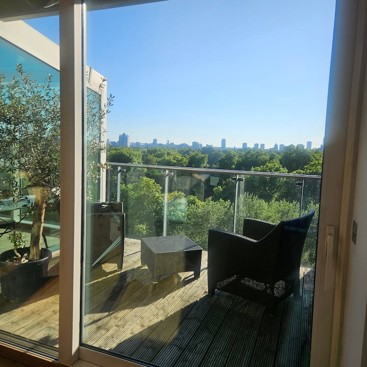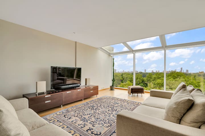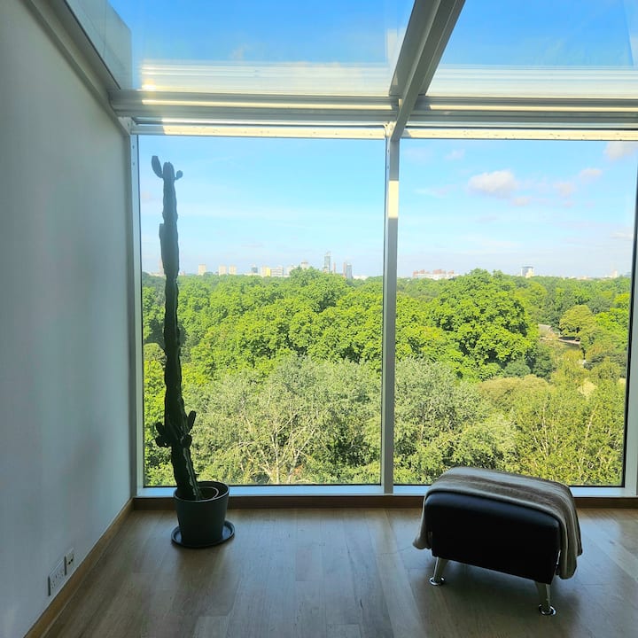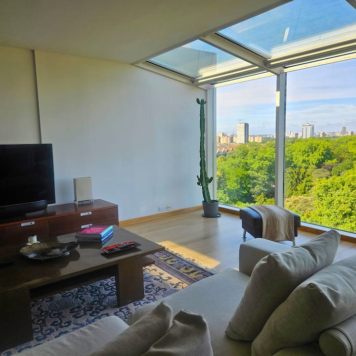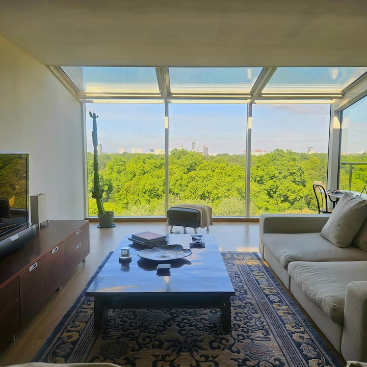 Პენტჰაუსის ზღაპრული ბინა, რომელიც პარკს გადაჰყურებს