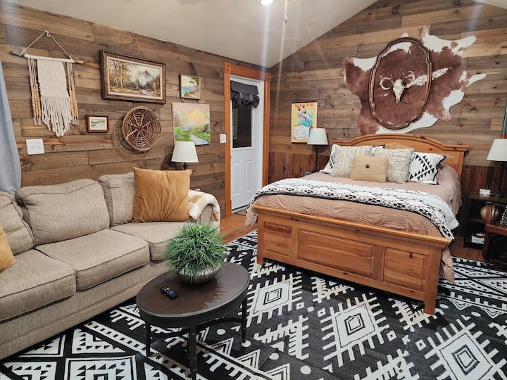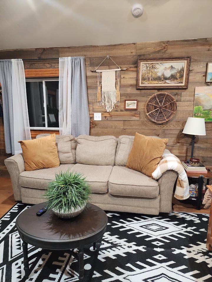 Კეთილი იყოს თქვენი მობრძანება ბაკ ‑ მთვარის ხის სახლში, რომელიც ჩვენი საცხოვრებლის სამი უნიკალური ხის სახლიდან ერთ-ერთია. Მას მარჯვნივ იპოვით, წარწერით „ხის სახლი #3“. Ეს მყუდრო საცხოვრებელი სავსეა ხასიათითა და მომხიბვლელობით, რომელშიც თავმოყრილია გადაკეთებული ნივთები. Ხის სახლში არის დედოფლის ზომის საწოლი ახალი თეთრეულით, პაბის ტიპის სასადილო მაგიდა, ყავის ბარი ყავით, მიკროტალღური ღუმელი, მინი მაცივარი, ყავის აპარატი, დივანი და სმარტ-ტელევიზორი. Სტუმრებს შეუძლიათ ისიამოვნონ უფასო ყავით, ბოთლის წყლით და ქალაქგარეთ უსასრულო ხედებით. Ამას გარდა, გთავაზობთ ქაღალდის თეფშებს, პლასტმასის ჭურჭელს, ყავის ჭიქებსა და სხვა პირველადი საჭიროების ნივთებს. Გთხოვთ, ეს ნივთები მხოლოდ სტუმრობისას გამოიყენოთ და გამგზავრებისას არ წაიღოთ.
