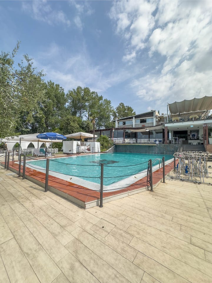 Ბინა 4 ადამიანისთვის ტბის ხედით, Wi-Fi ქსელითა და აუზით.