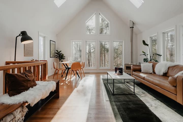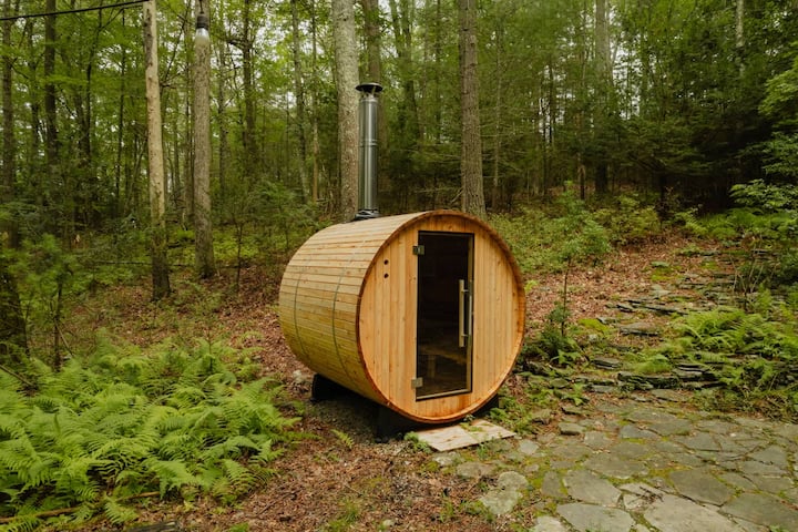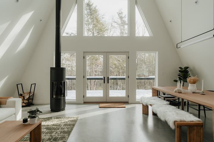 Darby A-Frame + ხის სახლი: ელეგანტური + თანამედროვე საუნით