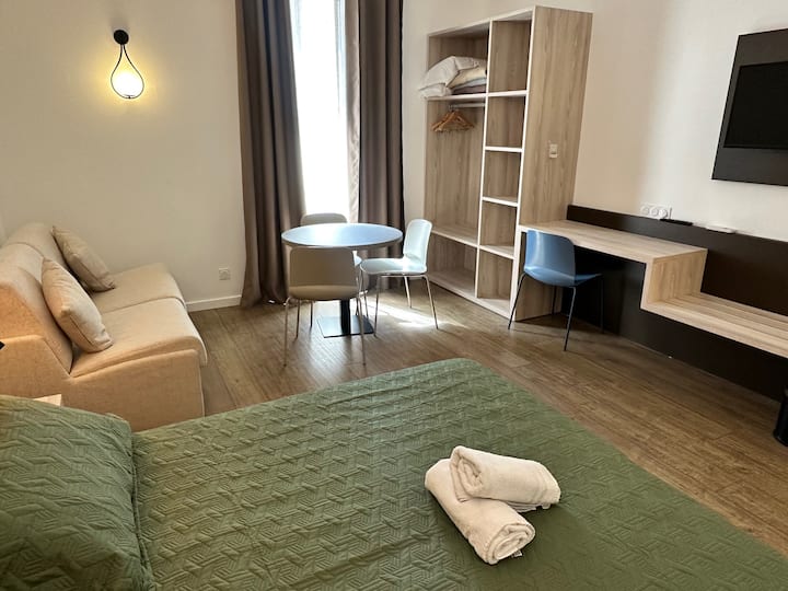 Ჩვენ ვფლობთ სასტუმრო დუ ნორდს, რომელიც იმავე შენობაში მდებარეობს და ხანგრძლივი სტუმრობის შესაძლებლობით ვქმნით საცხოვრებლის შეთავაზებას.
