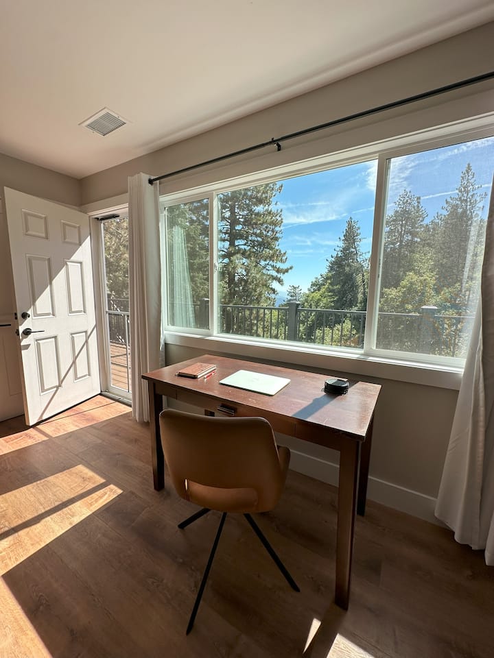 • სამუშაო სადგურები: ცოტა ადამიანს მოსწონს დასასვენებლად სამუშაო სადგურის საჭიროება, მაგრამ თუ ვიდეოკონფერენციის გადაღება გჭირდებათ, დარწმუნდით, რომ ამის გაკეთება შეგიძლიათ ხის სახლის ნებისმიერი წერტილიდან, ან, როგორც მფლობელებს ურჩევნიათ, რომ გემბანზე დატკბეთ ხედით (რამდენიმე ადგილი გარე სამუშაო სივრცის მოსაწყობად). Ძირითად საძინებელში არის სამუშაო სივრცე, „flex-desk“ და კალთის მაგიდა, რომელიც შეიძლება განთავსდეს ნებისმიერ ადგილას.