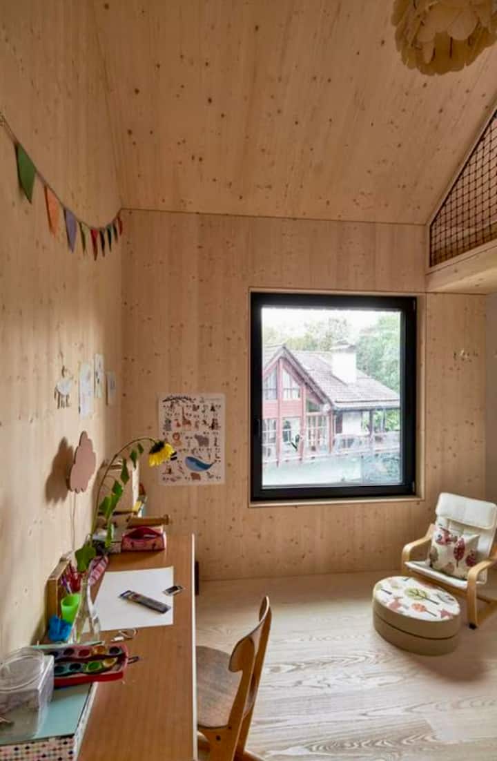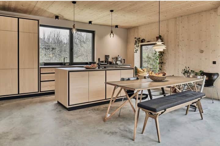 Ტყის სახლი მდინარის გასასვლელით, ოჯახებისთვის შესაფერისი