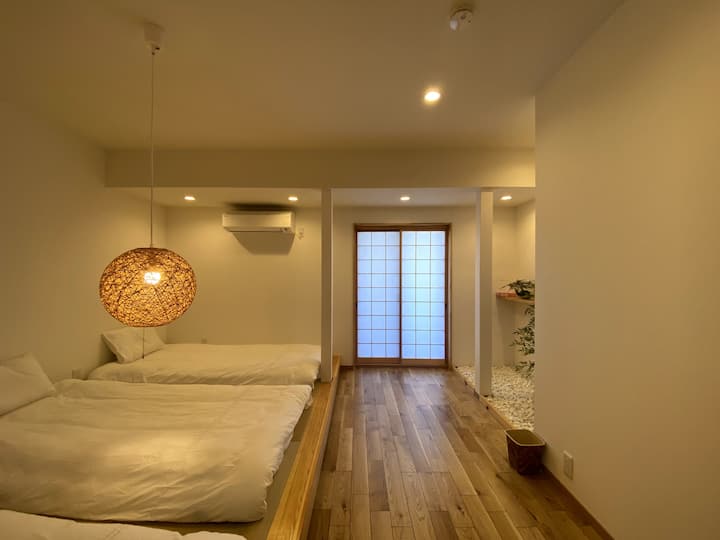 ფეხით 5 წუთის სავალზე ტენგაჩაიას სადგურიდან.Იაპონური სტილის ბაღი თანამედროვე რემონტით.Პირდაპირ კვანძი ნამბასა და დოტონბორზე