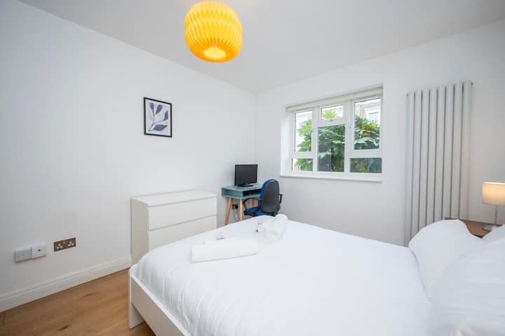 Დე ‑ ბოვუარ ‑ თაუნში მდებარე ეს მყუდრო 1-საძინებლიანი მიწისზედა ბინა, საიდანაც ბაღის მშვიდი ხედები იშლება. Ისიამოვნეთ თანამედროვე საყოფაცხოვრებო პირობებით, როგორიცაა სრულად აღჭურვილი სამზარეულო, სინათლით სავსე საცხოვრებელი სივრცე და იატაკქვეშა გათბობა სააბაზანოში. Იდეალურია დასასვენებლად. მასში არის ორადგილიანი საწოლი, სამუშაო სივრცე და Google Chromecast სტრიმინგისთვის. Იდეალურია წყვილებისთვის ან მარტო მოგზაურებისთვის, რომლებსაც ლონდონში მშვიდი დასვენება სჭირდებათ.