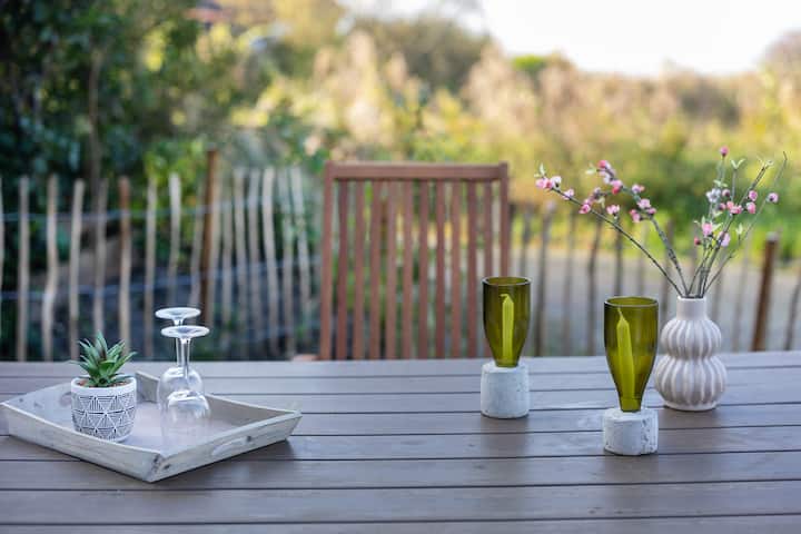 - დასასვენებლად დასაქირავებელი საცხოვრებლები გარე დასაჯდომი ადგილებით: Geestland