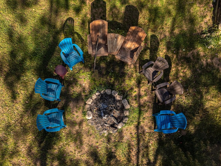 ტბისპირა ხის სახლი ბუხრით ბილიკებთან ახლოს