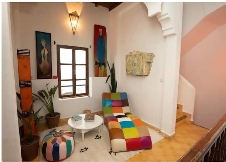მე და ეილინი სიამოვნებით გიმასპინძლებთ ჩვენს მშვენიერ დიდ ნათელ რიადში ესტაუირაში. Რიადი მდებარეობს მედინას ცენტრში, მთავარი ტურისტული ქუჩიდან, ასე რომ თქვენ გარშემორტყმული ხართ მაღაზიებით, რესტორნებით და ლამაზი გრილი და ელეგანტური ბარებით. Მედინა არის ნათელი, ფერადი და ძალიან დატვირთული - ასე რომ, თუ თქვენ ეძებთ წყნარ რიადს, ჩვენ გირჩევთ გამოიყურებოდეს გარეთ Medina. Ჩვენი საყვარელი სახლის მენეჯერი სანდრა დაგიკავშირდებათ, როდესაც დაჯავშნით, რომ შემოგთავაზოთ დახმარება სატრანსპორტო ღონისძიებებსა და ჩამოსვლის დროსთან დაკავშირებით. Ის დაგხვდებათ თქვენი ჩამოსვლისას და გაჩვენებთ რიადს. Სანდრას აქვს სიმდიდრე ცოდნა ყველაფერი უნდა გააკეთოს მშვენიერი Essaouira ასე რომ, თუ გსურთ განიცდიან უსაფრთხო საქმიანობის, რომლებიც priced სწორად, როგორიცაა ქარის-surfing, quad ველოსიპედები ან ცხენი ჩავა არ მოგერიდებათ დაუკავშირდა მას. Ის ხელმისაწვდომია იმისთვის, რომ ფანტასტიკური დრო გაატაროთ როგორც მშვენიერ ესაუირაში, ისე რიად ბეტიში.