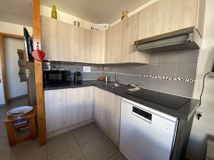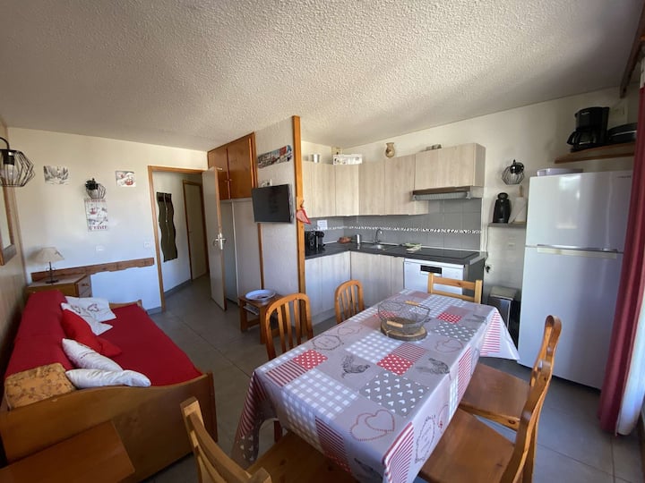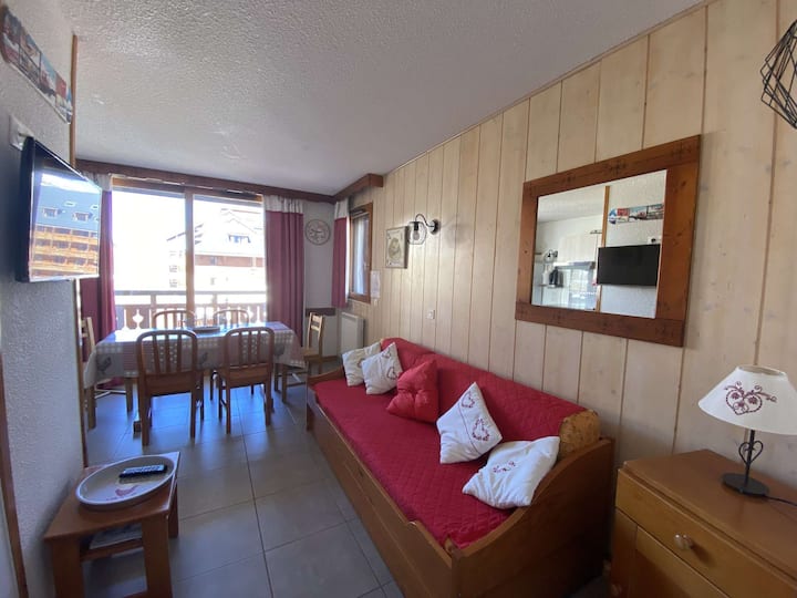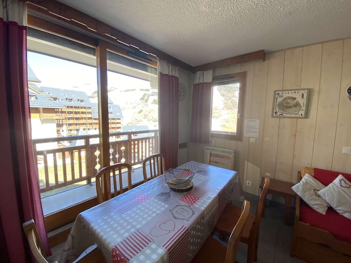 Ეს ბინა მდებარეობს მე-7 სართულზე, რეზიდენციის ლიფტით Le Soleil, რომელიც გთავაზობთ მშვიდ გარემოს, ფერდობებისა და კურორტის შესანიშნავი ხედით.