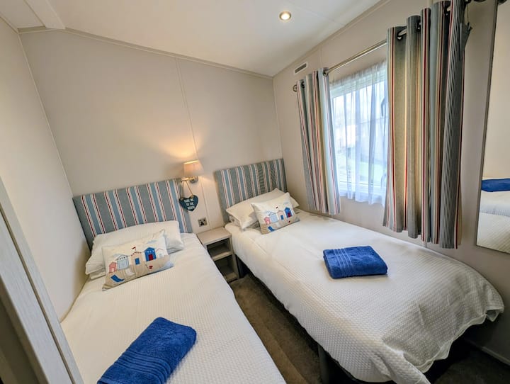 ეს ლამაზად მოწყობილი, ორსაძინებლიანი კოტეჯი მდებარეობს 5‑ვარსკვლავიან კომპლექსში „Hoburne Naish Park“, კლდის ზედა ნაწილიდან მხოლოდ სამი რიგით უკან. აქედან იშლება ზღვის ნაწილობრივი ხედი და ვაიტის კუნძულის ხედიც ჩანს, პლუს, პლაჟი ფეხით სავალ მანძილზეა.