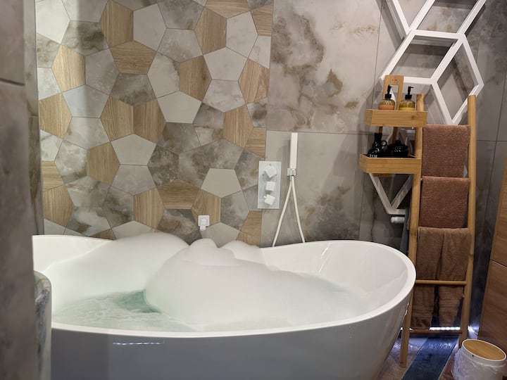 Ორკაციანი ჰიდრომასაჟიანი აუზი, რომელიც იდეალურია ხანგრძლივი დღის შემდეგ დასასვენებლად, უზრუნველყოფს ნეტარი დასვენების მომენტებს.