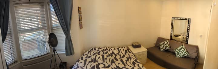 Შესანიშნავი პირველი სართულის ორადგილიანი ოთახიდა არასავალდებულო გასაშლელი დივანი