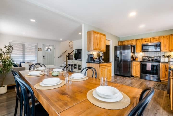 Კეთილი იყოს თქვენი მობრძანება ჰეკლბერი რიჯში - თქვენი სახლის ბაზა სამთო თავგადასავლებისთვის, ოჯახური გართობისა და სრული დასვენებისთვის. 2 480 კვ. ფუტი ლამაზად მოწყობილი სივრცე სამ დონეზეა გაშლილი და განსაცვიფრებელი გარე სივრცე ორადგილიანი ტერასებითა და მოპირკეთებული ვერანდით - ეს სახლი იდეალურია ოჯახებისთვის, დიდი ჯგუფებისა და მეგობრებისთვის.