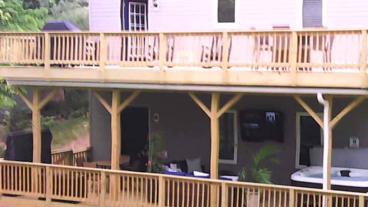 Დაისვენეთ ჰაკლბერის ქედზე - თქვენი მყუდრო მთის განმარტოება მასანუტენის კურორტის შუაგულში. Ამ ფართო 4BR/3BA საცხოვრებელში არის კინო/სათამაშო ოთახი, სრულად აღჭურვილი სამზარეულო და სრულიად ახალი 1000 კვ. ფუტიანი ორადგილიანი ტერასა ჰიდრომასაჟიანი აუზით, პინგ-პონგითა და გარე სასადილოთი. Იდეალურია ოჯახებისა და ჯგუფებისთვის, თხილამურებით სრიალიდან, ლაშქრობიდან, გოლფიდან და შენანდოას ეროვნული პარკიდან რამდენიმე წუთში. Დატკბით ხის მშვიდი ხედებით და თანამედროვე კომფორტით.