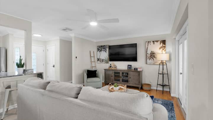 შეაბიჯეთ ამ გამორჩეულად გარემონტებულ საცხოვრებელში, რომელშიც არის 3 საძინებელი და 2 სააბაზანო. ის იდეალურია ოჯახებისა და ჯგუფებისთვის, რომლებსაც დასვენება, ახალი მეგობრების შეძენა და დაუვიწყარი მოგონებების შექმნა სურთ. მადეირას, რედინგტონისა და ინდიან‑როქსის განსაცვიფრებელი პლაჟებიდან სულ რაღაც 10‑15 წუთის სავალზე მდებარეობს, ამიტომ სანაპიროზე თავგადასავლებისთვის იდეალური ადგილია. გაატარეთ დღეები ფხვიერ ქვიშაზე, ივარჯიშეთ თევზაობა კლირვოთერ-პირში, მოიკვლიეთ ზვიგენის კბილები ან აღმოაჩინეთ ფორტ-დე-სოტოს პარკის ბუნებრივი სილამაზე.