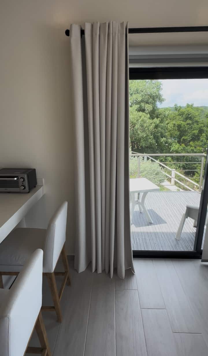 Კონდიციონერი, ჭერის ვენტილატორი, 5% მზის ფერები, უშაქრო ფარდები, შუშის კარი ცალკე ტერასაზე ჯდომისთვის ან/და საჭმელად, დიდი სასრიალო კარი შთამბეჭდავი სანაპიროთი და ოკეანის ხედი პირდაპირ შიგნიდან. Ასევე, ხელმისაწვდომია დიდი ტერასა, რომელიც სანაპიროსა და ოკეანის ხედებს გადაჰყურებს, კომფორტული შეზლონგიანი სკამებითა და დიდი ქოლგით. სასტუმრო სახლში შესასვლელთან, შესასვლელ კართან ან მოცურების მექანიზმიანი შუშის კარებთან არის 1‑2 საფეხური. Საოჯახო სასტუმრომდე მისვლა ან მისვლა ძალიან ცოტაა. (ტერასის სივრცე შეიძლება გაზიარდეს იმავე ზომის სხვა საოჯახო სასტუმრო სახლთან, იხილეთ ზემოთ მოცემული პირველი პუნქტი მე-2 საოჯახო სასტუმროს შესახებ)