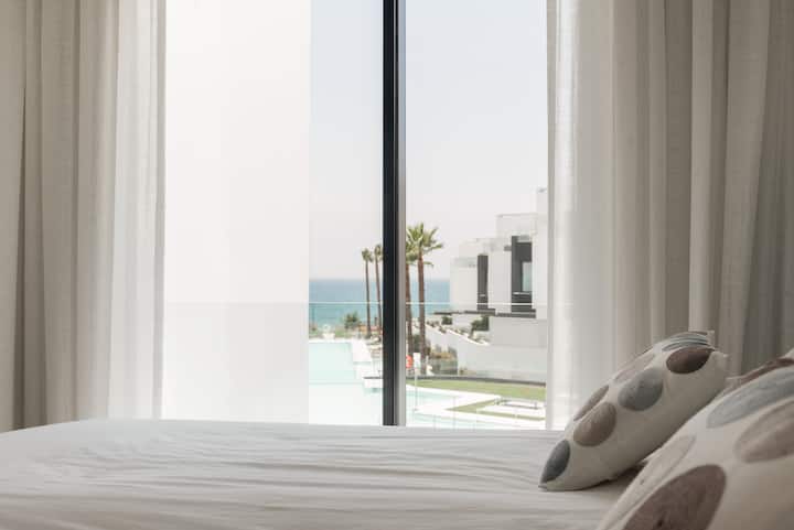 Თანამედროვე ტაუნჰაუსი ზღვის ხედით მაღალი კლასის გაერთიანებაში