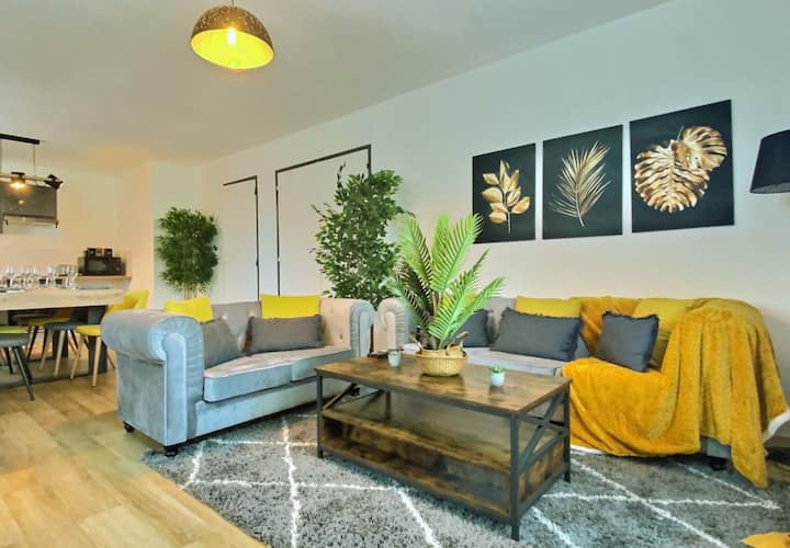 Ეს ფართო და ნათელი ტაუნჰაუსი გათვლილია მაქსიმუმ 8 ადამიანზე. Ის გთავაზობთ ყველა კომფორტს, რომელიც გჭირდებათ სასიამოვნო სტუმრობისთვის - იქნება ეს ოჯახთან თუ მეგობრებთან ერთად მოგზაურობა.