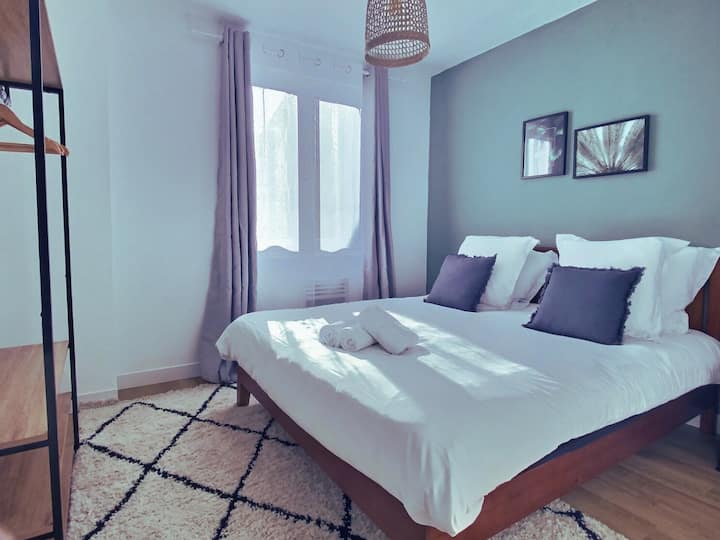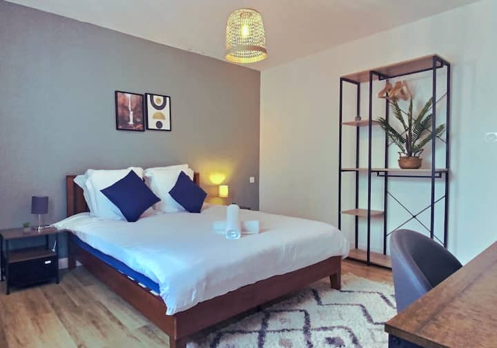 Ფართო სახლი 8 ადამიანისთვის, იდეალურია ოჯახთან ან მეგობრებთან ერთად სტუმრობისთვის. Წყნარ ადგილას მდებარეობს 4 საძინებელი, აღჭურვილი სამზარეულო, თბილი მისაღები ოთახი და Wi-Fi. Უფასო და მარტივი პარკირების ადგილი ახლომახლო. Ქალაქის ცენტრიდან რამდენიმე წუთის სავალზე დატკბით მოსახერხებელი მდებარეობით ადგილობრივი მაღაზიების, რესტორნებისა და აქტივობების აღმოსაჩენად. Პირსახოცები და თეთრეული მოწოდებულია. Დაჯავშნეთ ახლავე კომფორტული და მშვიდი სტუმრობისთვის.