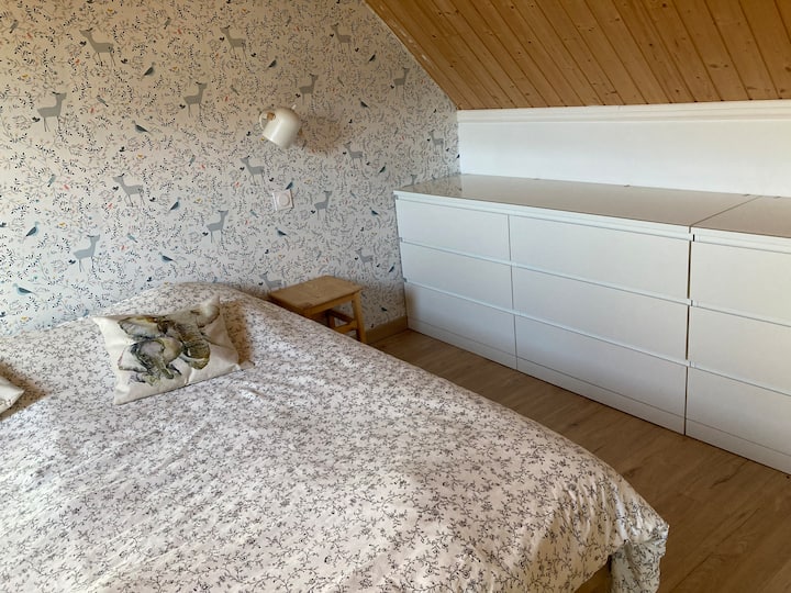 Ზემოთ საძინებელი, სააბაზანო და პირადი უნიტაზი პირველ სართულზე