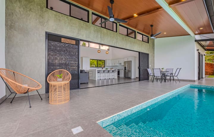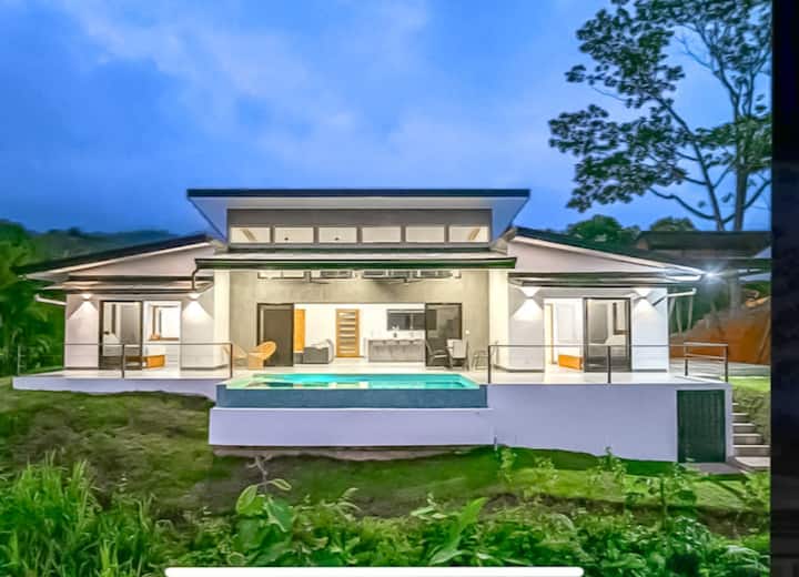 Კერძო, თანამედროვე საცხოვრებლები ჯუნგლებში, მთაზე, რომელიც გადაჰყურებს ოკეანეს კოსტა-რიკის სამხრეთ წყნარ ოკეანეში… რა თქმა უნდა, აუზით.