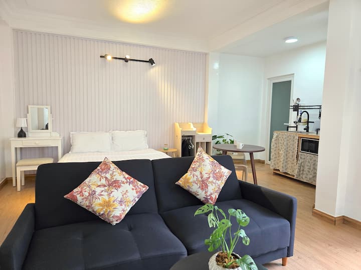 Თანამედროვე სტუდიო ქალაქის ცენტრთან ახლოს, სრულად აღჭურვილი.