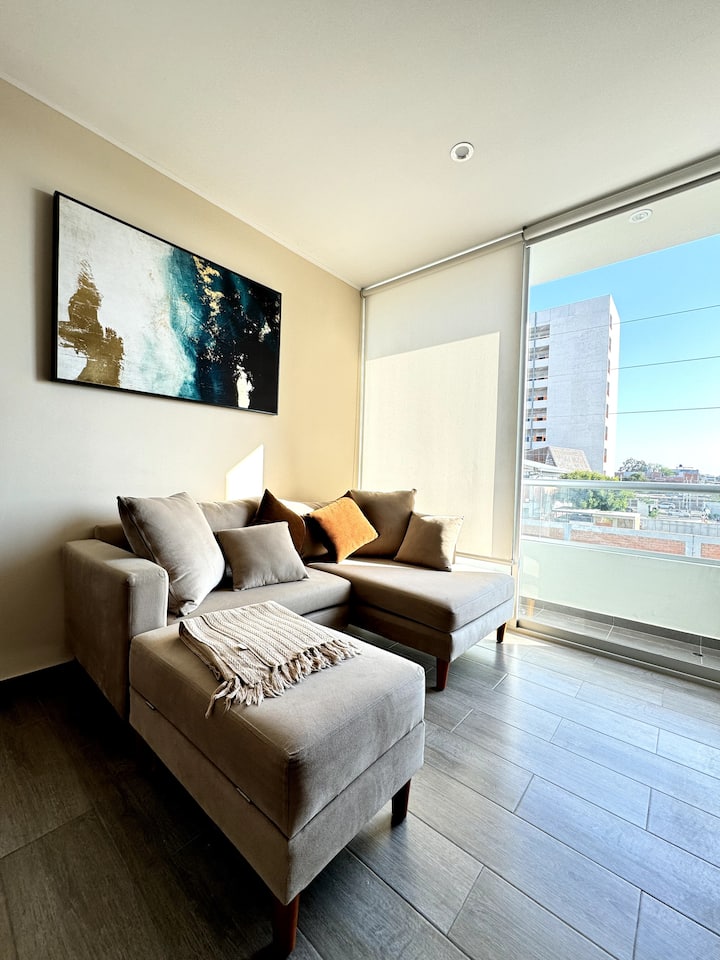 [hoSt] თანამედროვე ბინა პიურაში 2 საძინებლით კონდიციონერით