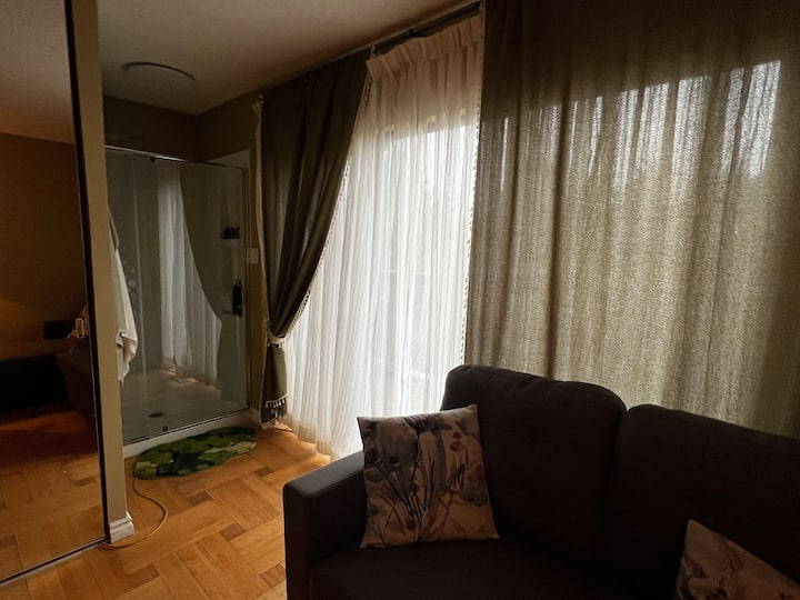 This place has a half bathroom that’s connected to your room.