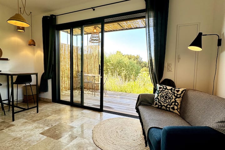 - დასასვენებლად დასაქირავებელი საცხოვრებლები გარე დასაჯდომი ადგილებით: Corse-du-Sud