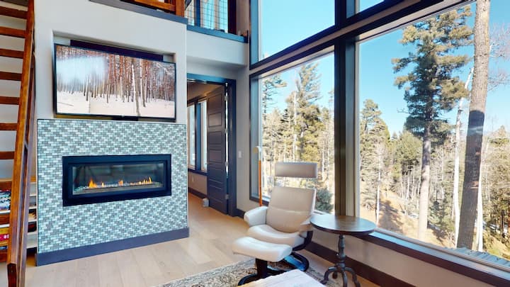 Შეიგრძენით თანამედროვე ლუქს-კლასის და თვალწარმტაცი მთის სილამაზე ამ ინდივიდუალურ საცხოვრებელში, რომელიც იდეალურად მდებარეობს Angel Fire-ში (ნიუ ‑ იორკი). Მონტე-ვერდეს ტბასთან, Angel Fire Country Club-თან და გოლფის მოედანთან 2,3 კილომეტრში, ხოლო სათხილამურო ზონიდან მხოლოდ 5,1 მილის დაშორებით, ეს სახლი შეუდარებელ კომფორტს გთავაზობთ ყველა სეზონისთვის. Საცხოვრებელში არის უსაფრთხო, ნაზად დახრილი სამანქანო გზა და მთავარი იატაკის შესასვლელი, რომელიც შესასვლელ კართან სულ რაღაც ორი საფეხურითაა აწეული, რაც ყველასთვის წვდომას ამარტივებს. Შიგნით დაგხვდებათ თანამედროვე დიზაინი და ულამაზესი ხედები. Მთავარი საცხოვრებელი სივრცე გამოირჩევა იატაკიდან ჭერამდე სურათების ფანჯრებით, რომლებიც ხეობის ბუნებრივ სილამაზეს ასახავს. Ტყავის სექციები ელექტროგადამცემებით გიწვევთ დასასვენებლად და დატკბეთ თანამედროვე გაზის ბუხრის გარემოთი, რომელიც ადვილად განათებულია ჩამრთველის გადაბრუნებით. Გართობისთვის 60-დუიმიანი სმარტ-ტელევიზორი გარსშემორტყმული ხმით და Blu-ray/DVD დამკვრელი უსაზღვრო ვარიანტებს გთავაზობთ.