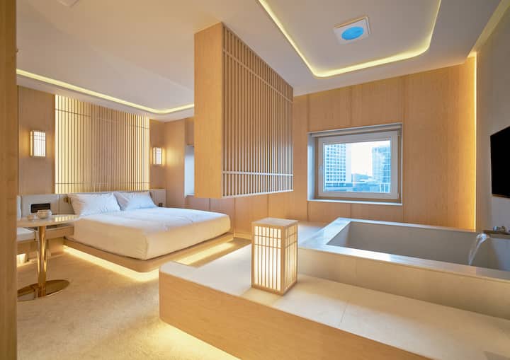 Ემოციური საცხოვრებელი/უფასო საუზმე 2 ადამიანისთვის/თბილი სპა/ფეხით 1 წუთის სავალზე Haeundae-დან/