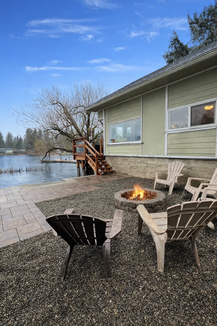 გასაოცარი ტბა ხის სახლიდან, პირსახოცითა და კოცონის დასანთები ადგილით