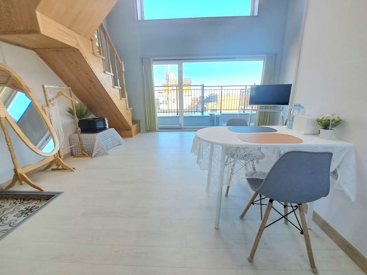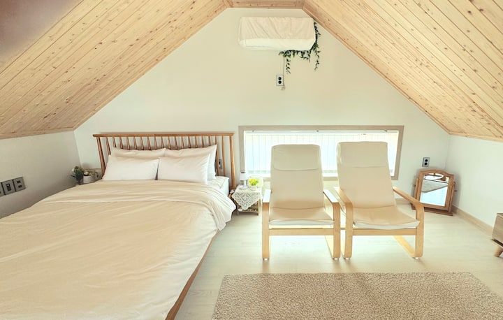 [განგვონ-დოს გოსონგი] ზღვის ხედით მანსარდი # აიაჯინთან ახლოს # სანაპირომდე 20 წუთი # მრავალდონიანი # მშვიდი # ორ ადამიანზე გათვლილი