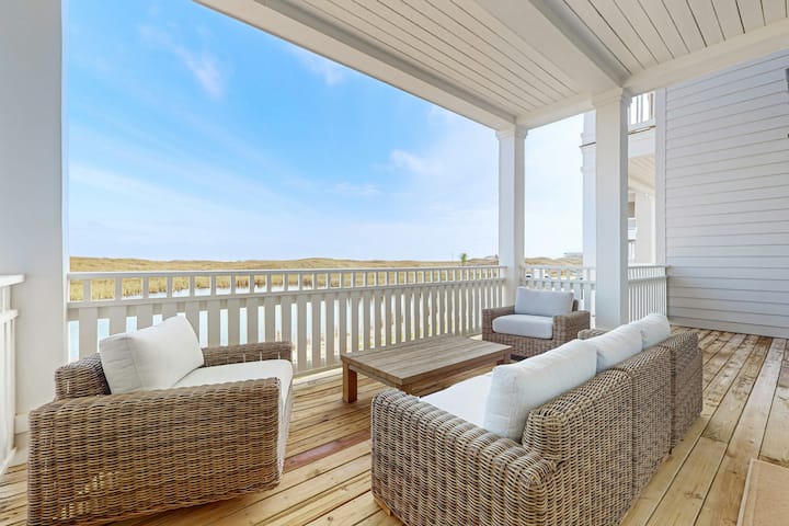 4 BR სახლი აივნებით, აუზით, გოლფით, საფეხურებით პლაჟამდე