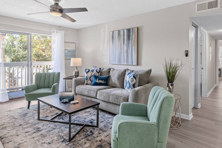 Კეთილი იყოს თქვენი მობრძანება შაქრიან თეთრ ქვიშის პლაჟებზე, ფლორიდის პანჰენდლის ზურმუხტის ყურის სანაპირო ზოლის გასწვრივ. Გეპატიჟებით ახლად განახლებულ, სუფთა და ხელუხლებელ, 2 საძინებელზე, 2 სააბაზანოზე, კერძო კონდომინიუმზე, რომელიც მდებარეობს დესტინის შუაგულში. Ჩვენი სახლი პროფესიონალურად (სადღეღამისო) იმართება iTrip Vacations Destin-ისა და Miramar Beach-ის მიერ. დაურეკეთ მათ პირდაპირ ფასდაკლებებისა თუ სპეციალური ფასდაკლებების მისაღებად!