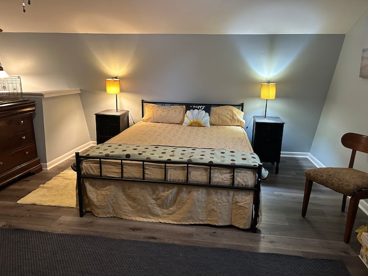 Დედოფლის ზომის საწოლი, არის ზემოთ, სპეციალური შესწავლით, კულინარიული/კვების ადგილით. Უფასო საპარკინგე ადგილი კერძო უსაფრთხო სამანქანო გზაზე. Შეკითხვების შემთხვევაში დამიკავშირდით, ვცდილობ, სწრაფად გიპასუხოთ 2 საათის განმავლობაში.