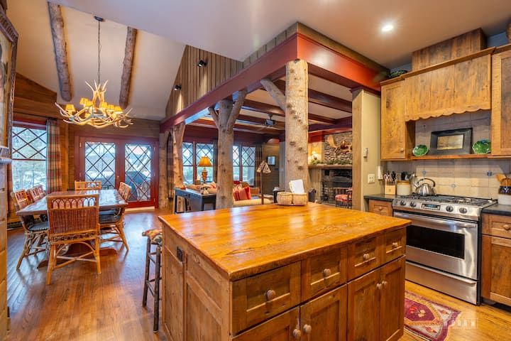 Ამ მშვენიერ საცხოვრებელში არის 6 კომფორტული საძინებელი 3 საძინებლით (ბინით), 2 სააბაზანოთი და მიმზიდველი ღია იატაკის გეგმით, რომელშიც ბევრი კომფორტული დასაჯდომი ადგილია მისაღებ ოთახში, მიმზიდველი ბუხრის წინ. Სამზარეულო სრულად აღჭურვილია ცენტრალური კუნძულით და უამრავი ადგილით საჭმლის მოსამზადებლად სახლში სასადილოდ, ხოლო სასადილო ოთახი მეფეების მაგიდით გარშემორტყმულია ფანჯრებით, რაც შესანიშნავი სასადილო შთაბეჭდილების საშუალებას იძლევა ხედებით!