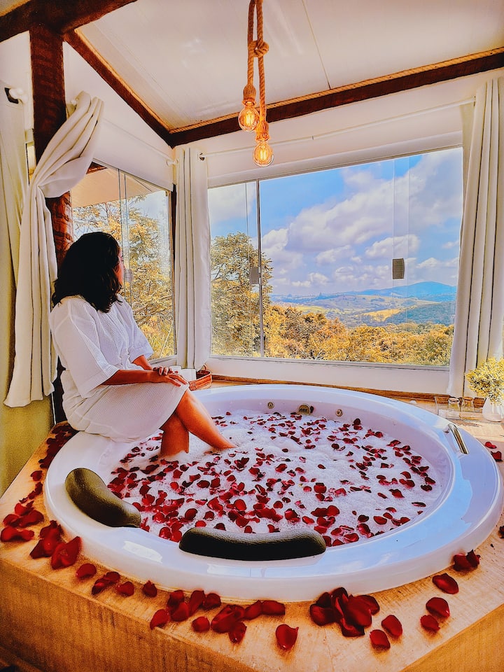 Შალე გათბობით აუზით, ბუხრით და ჯაკუზით
