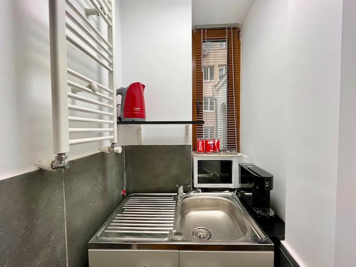 ქალაქის ცენტრში • თანამედროვე ოთახი ქუჩის ხედით