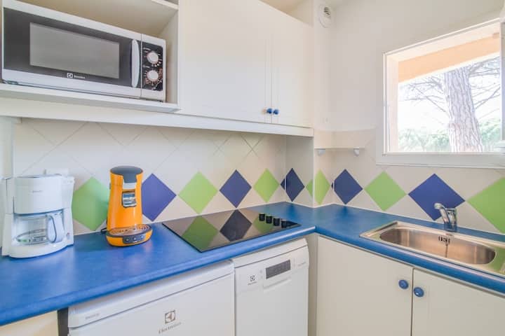 სტუდიო 4 ადამიანზე. მდებარეობს პირველ სართულზე, ბაღში. ხეების ხედი. სრულად აღჭურვილი სამზარეულო: მაცივარი, კერამიკული ქურა, ღუმელი, ჭურჭლის სარეცხი მანქანა, ყავის კლასიკური აპარატი და Senseo, ჭურჭელი და დანა‑ჩანგალი. აღჭურვილობა: კონდიციონერი, გათბობა, საცავი, სეიფი, პირსახოცის საშრობი და ტელევიზორი. გაითვალისწინეთ: ბინაში შესასვლელად საჭიროა ტყით დაფარული გზის გადაკვეთა და კიბეებით ჩამოსვლა.