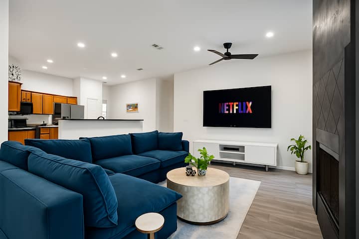 Დატკბით სრულად აღჭურვილი სამზარეულოთი გაზქურით, ღია მისაღები სივრცეებით და 80-დუიმიანი ტელევიზორით ფილმების ღამეებისთვის.
