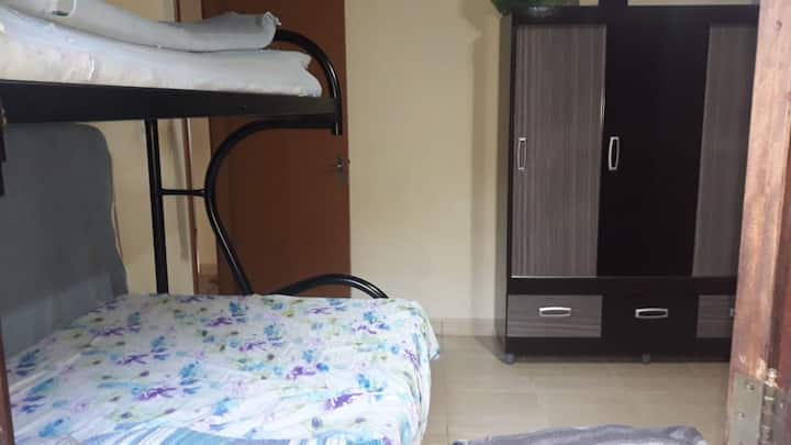1 ორადგილიანი საწოლი, 1 ორსართულიანი საწოლი, 1 ლეიბი იატაკზე