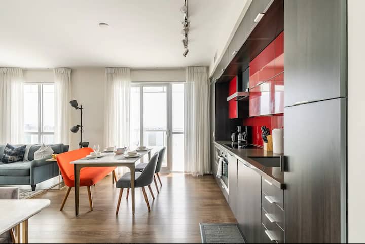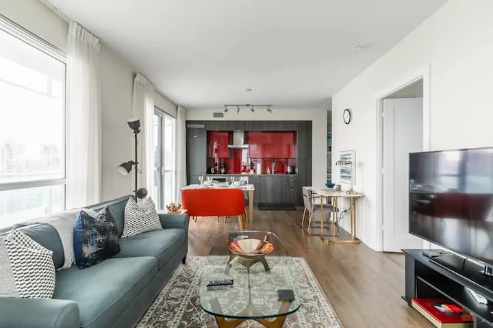 Ეს შთამბეჭდავი ლუქს-კლასის 2BR კონდომინიუმი ყველაფერია: ჩვენ ვეძებთ გრძელვადიან სტუმარს ჩვენს ჩვეულებრივ დატვირთულ Airbnb ‑ ზე, რომელიც შესანიშნავ ტერიტორიაზე მდებარეობს.