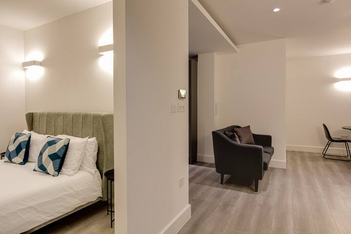 Დახვეწილი ღია გეგმარების ბინა უფასო პარკირების ადგილით