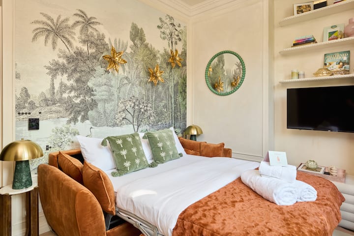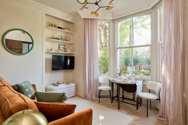 გაეცანით პარიზული ელეგანტურობით გამორჩეულ სტუდიოს, რომელიც კლასიკურ ვიქტორიანულ სახლშია მოწყობილი მშვიდ ქუჩაზე, შეპარდს‑ბუშში. Atelier Tymovski‑ს (BIID) მიერ დაპროექტებული ეს ელეგანტური საცხოვრებელი გამოირჩევა მაღალი ჭერით, ეპოქური დეტალებით, ხის იატაკით, სრულად აღჭურვილი სამზარეულოთი, მწვანე მარმარილოს საშხაპით, სუპერმაღალი სიჩქარის Wi‑Fi ქსელითა და მყუდრო პატიოთი. გაისეირნეთ უესტფილდ ლონდონში, სოჰო ჰაუს უაიტ სიტიში და მუსიკალურ სივრცეებში. მეტროს ორი სადგური 5‑10 წუთის სავალზეა, რაც ლონდონის ცენტრში სწრაფად მისვლას გაგიმარტივებთ.