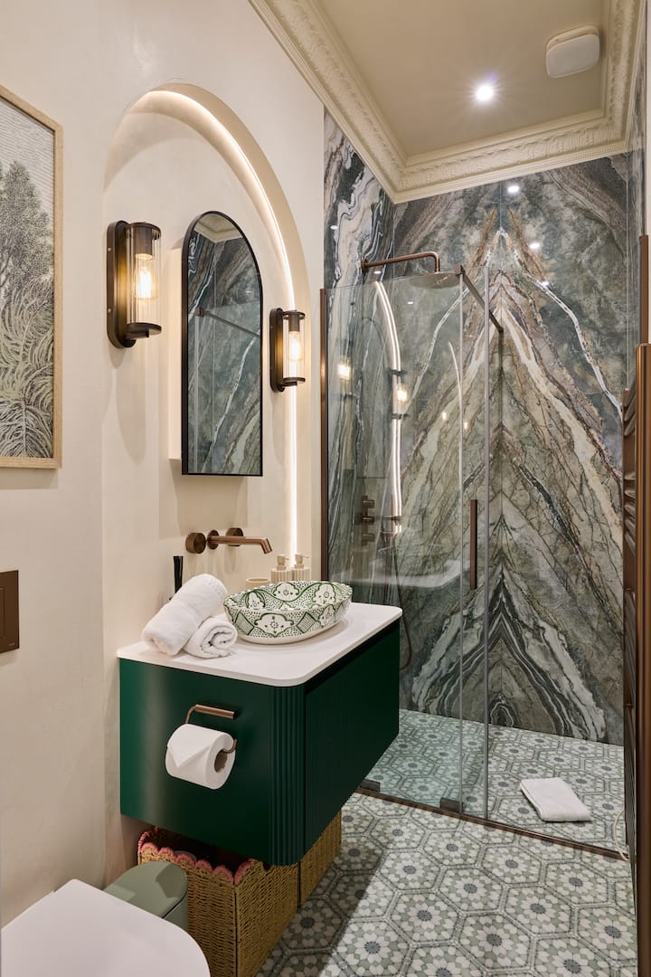 ✔ ელეგანტური დიზაინი და კომფორტი: ინტერიერი შექმნილია პროფესიონალების მიერ (Atelier Tymovski BIID) — მაღალი ჭერი, შევრონის პარკეტის იატაკი და ელეგანტური პარიზული დეკორი ქმნის ბუტიკ-ოტელის განწყობას.