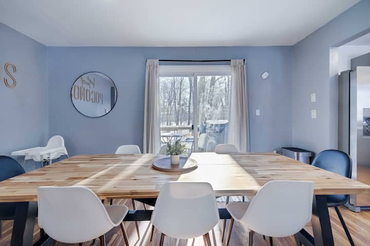 Დაისვენეთ საოცნებო პოკონოს მთაზე! Ეს ფართო 4-საძინებლიანი სახლი 10 კომფორტულად იძინებს, რაც ფუფუნებისა და თავგადასავლების იდეალურ ნაზავს გთავაზობთ. Განიტვირთეთ ცალკე ჰიდრომასაჟის აუზში, შეიკრიბეთ ცეცხლმოკიდებულ ადგილას და მიირთვით ალ-ფრესკო ბარბექიუს გრილით. Სათამაშო ლოფტი უზრუნველყოფს გართობას ყველა ასაკისთვის, ხოლო საყოფაცხოვრებო პირობები, როგორიცაა აუზი, პლაჟები, ნაოსნობა და მინი-გოლფი, უზრუნველყოფს უწყვეტ გართობას. Ცენტრში მდებარეობს მრავალრიცხოვანი აკვაპარკები და სათხილამურო კურორტები - თქვენი ოჯახური დასვენება იწყება აქ!